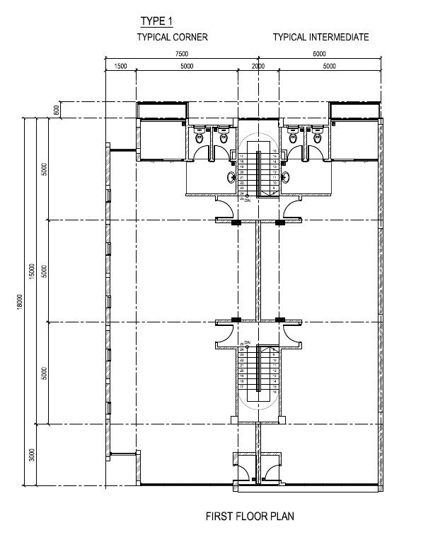 Doors | Natural anodised aluminium roller shutter First Floor Entrance door – 1 hour fire rated door Toilet door - PVC door |